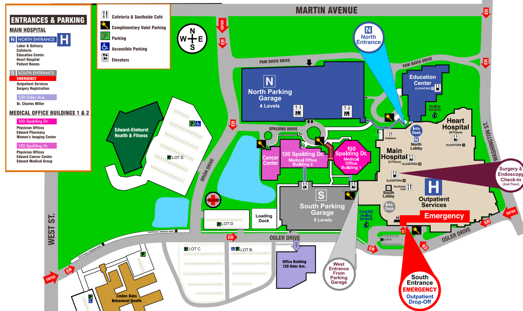 Heart Hospital is location the main level of the hospital, Naperville campus. Enter at the North entrance and proceed to the Heart Hospital. Room is located to the left of the piano room. A greeter will also be stationed at the entrance.